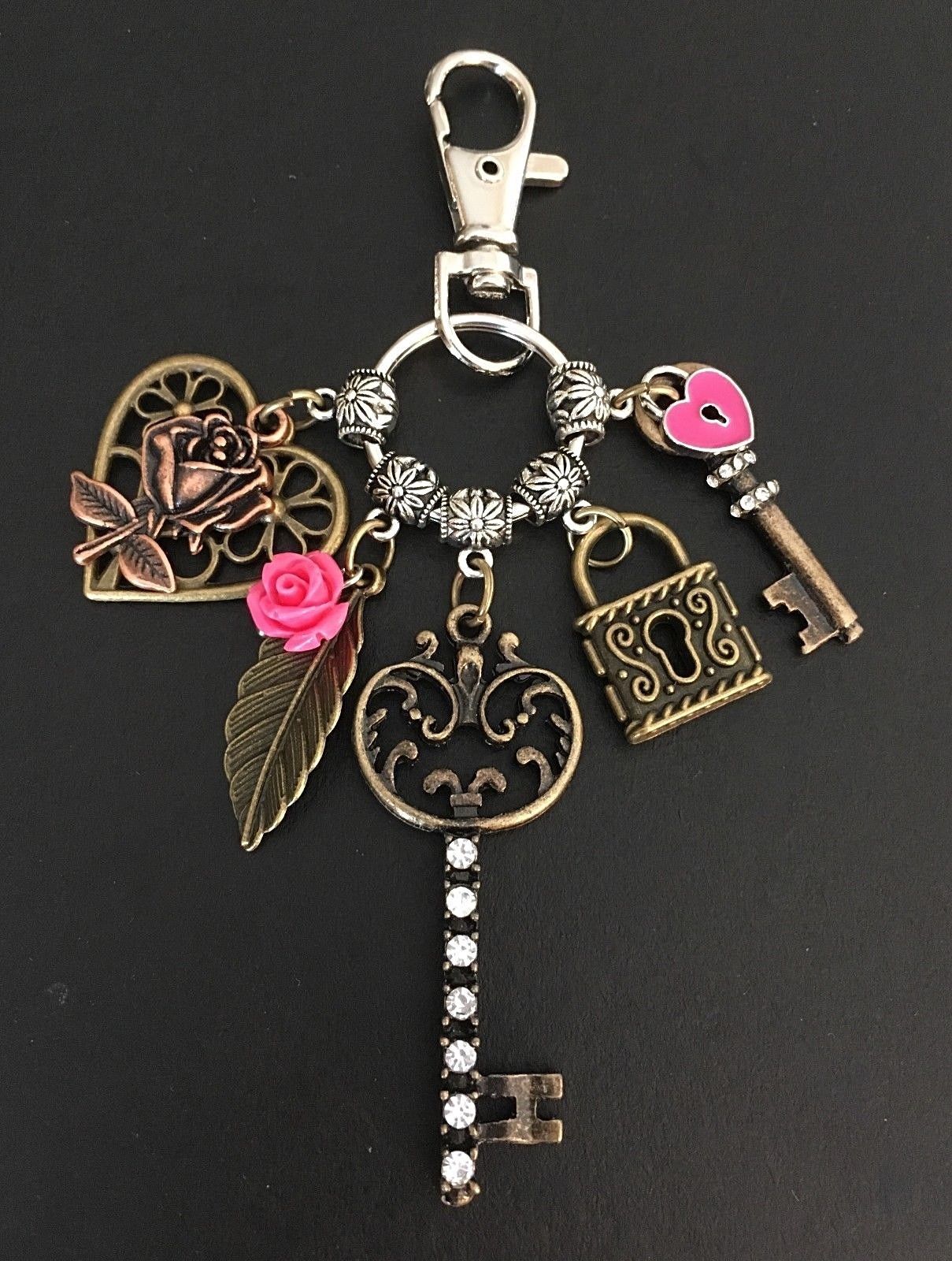 Title (ebay affiliate link): VICTORIAN- BOHO VINTAGE KEY HEART ROSE LOCK PURSE/BAG PENDANT KEY CHARM