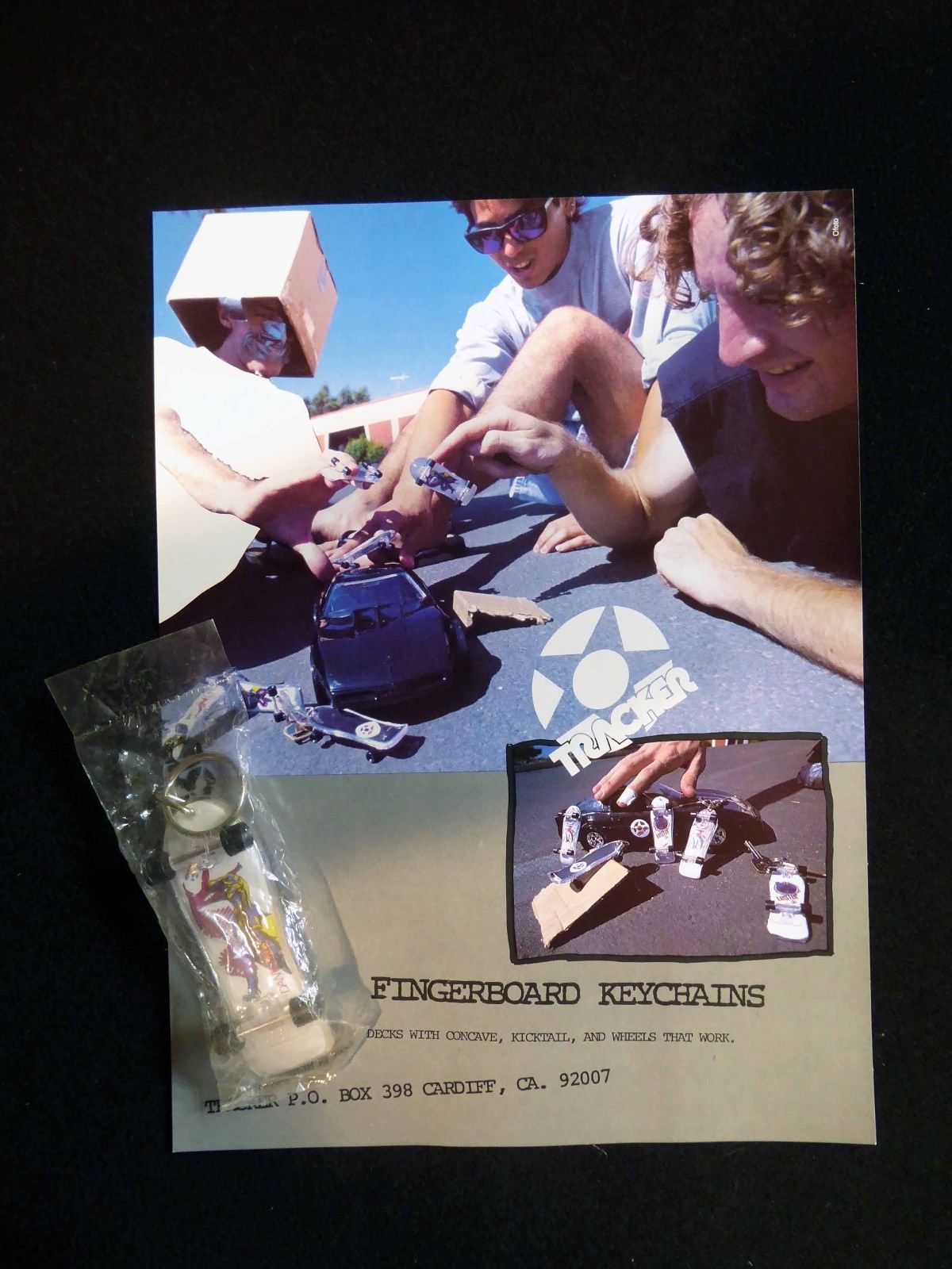 Title (ebay affiliate link): Tracker Trucks Pro skater Dan Wilkes fingerboard Keychain and ad