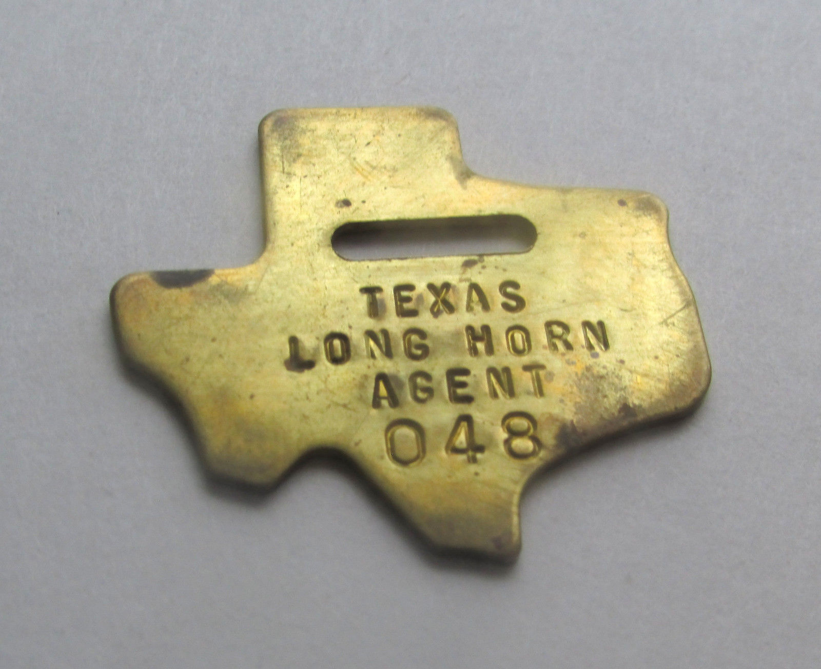 TEXAS LONG HORN AGENT BADGE RANGER WATCH FOB brass vintage key chain tag ranch