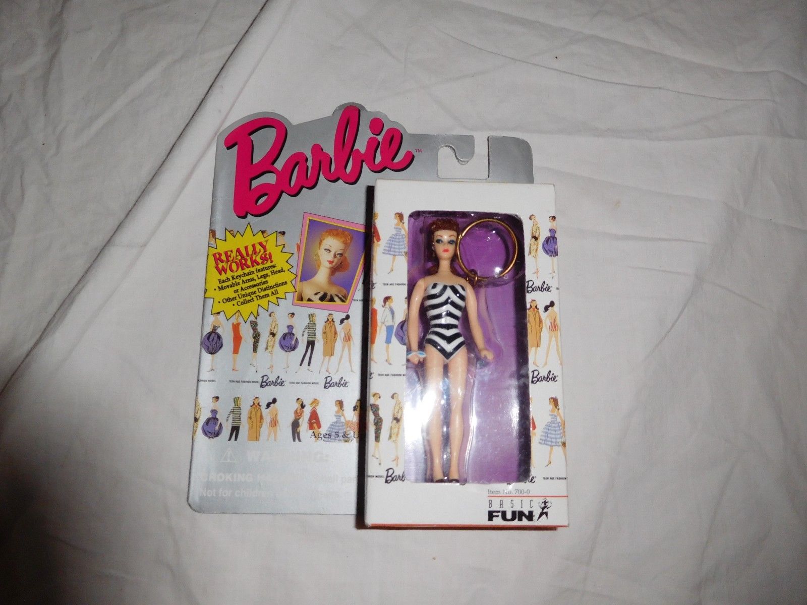 Title (ebay affiliate link): Vintage Mattel Barbie Keychain"1959 Original Barbie" Black & White Swimsuit 1995