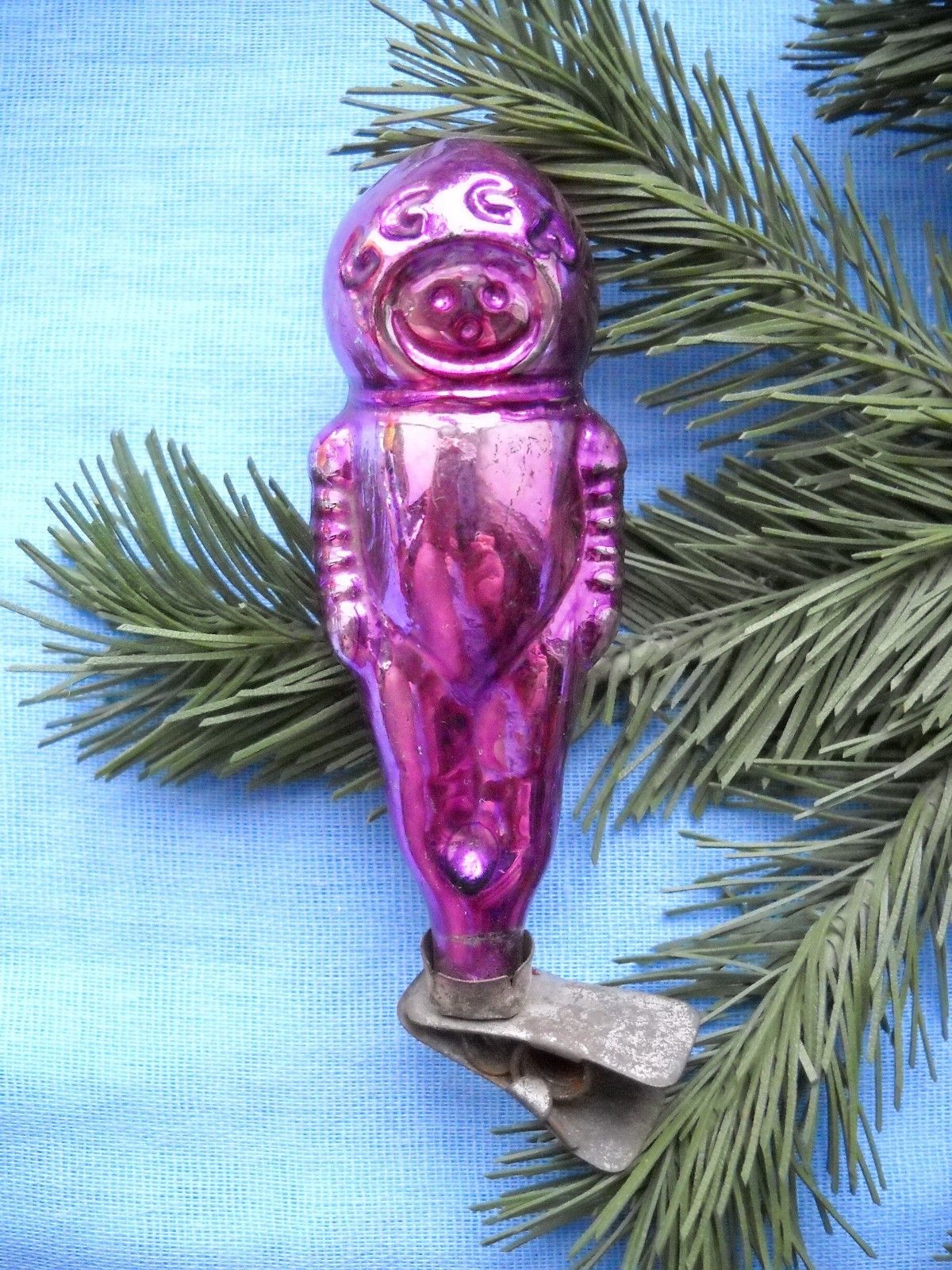 OLD RUSSIAN GLASS CHRISTMAS ORNAMENT COSMONAUT