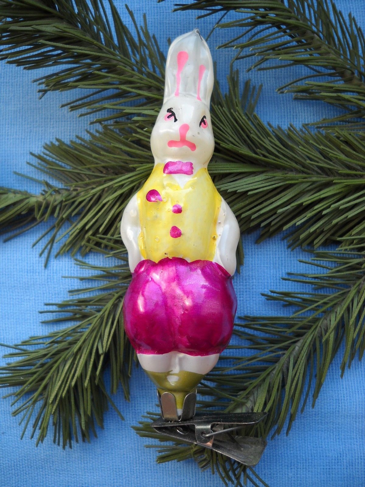 VINTAGE RUSSIAN GLASS CHRISTMAS ORNAMENT RABBIT