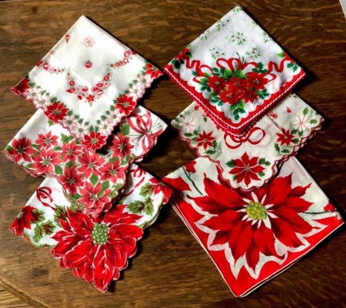 Title (ebay affiliate link): 6 Vintage 40''s 50''s Holiday Christmas Poinsettia Ladies Hankies Handkerchiefs