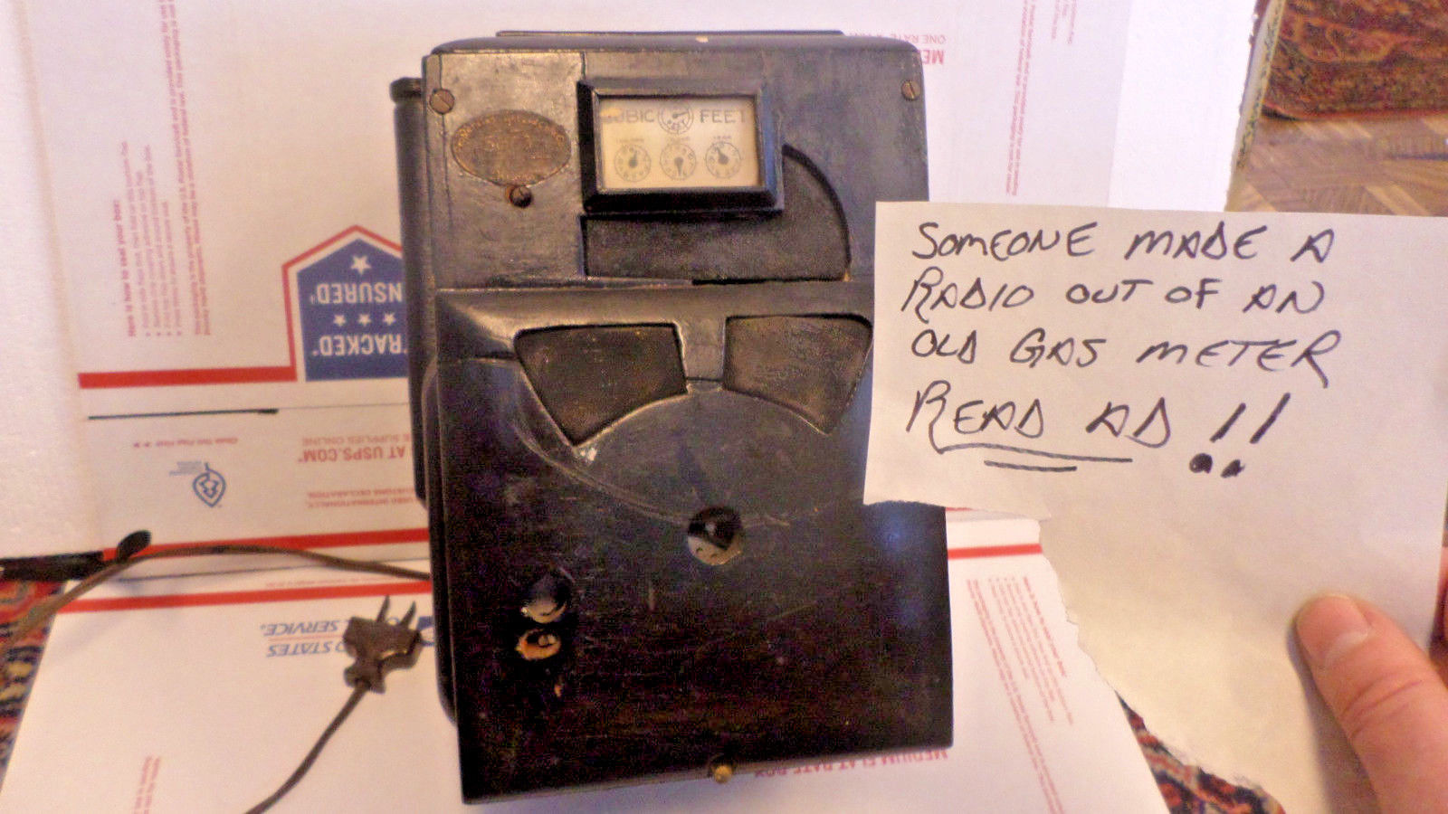 Antique Gas Meter wooden peoples gas converted to tube radio crazy design