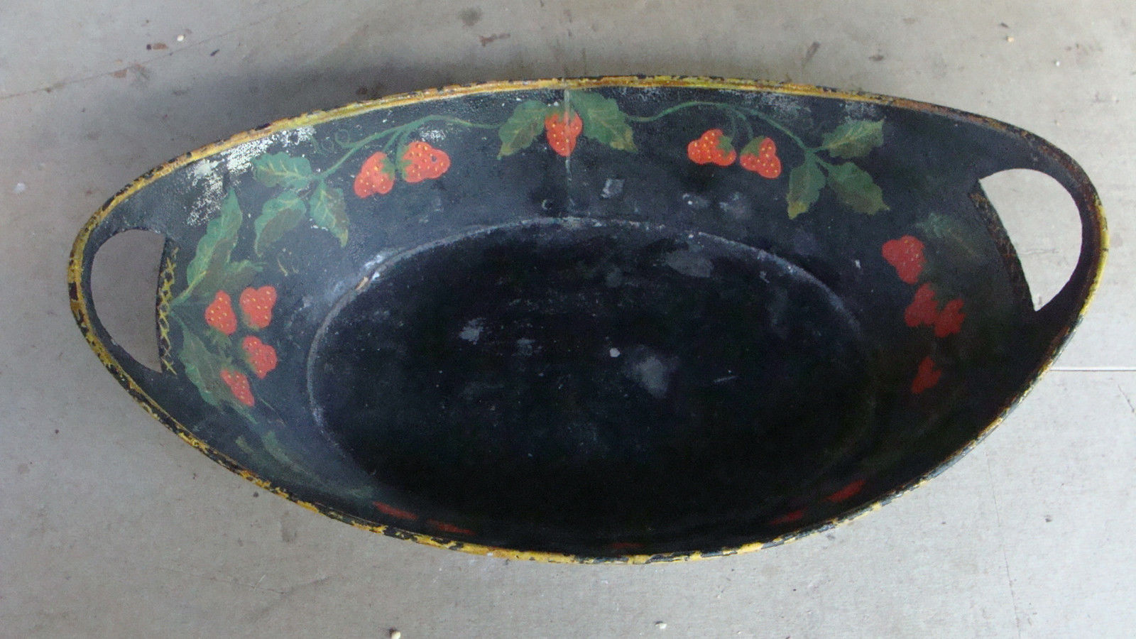 Title (ebay affiliate link): 19th C tole apple / tray original surface & paint decoration, strawberries *