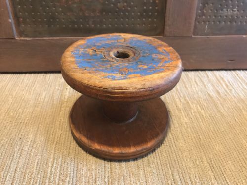 Title (ebay affiliate link): Antique Primitive Wooden Textile Spool Traces Of Blue Paint