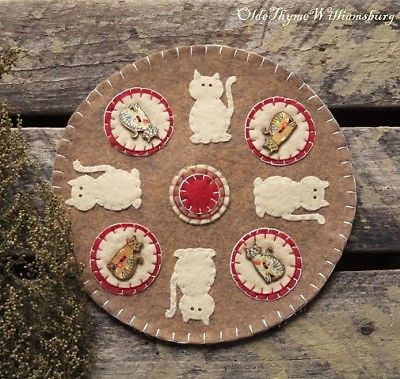 Primitive Stitchery Buttermilk Cats Penny Rug ~ Kitty Buttons Candle Mat