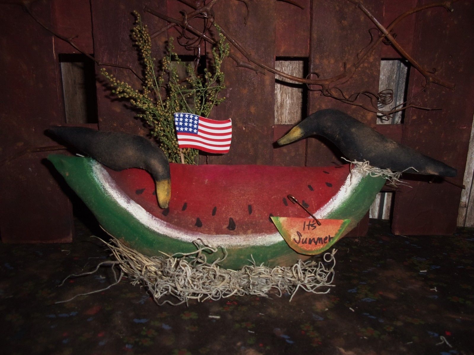 Title (ebay affiliate link): ** Primitive 5.5x11.5in WATERMELON ON BASE 2 CROWS country old rusty doll**