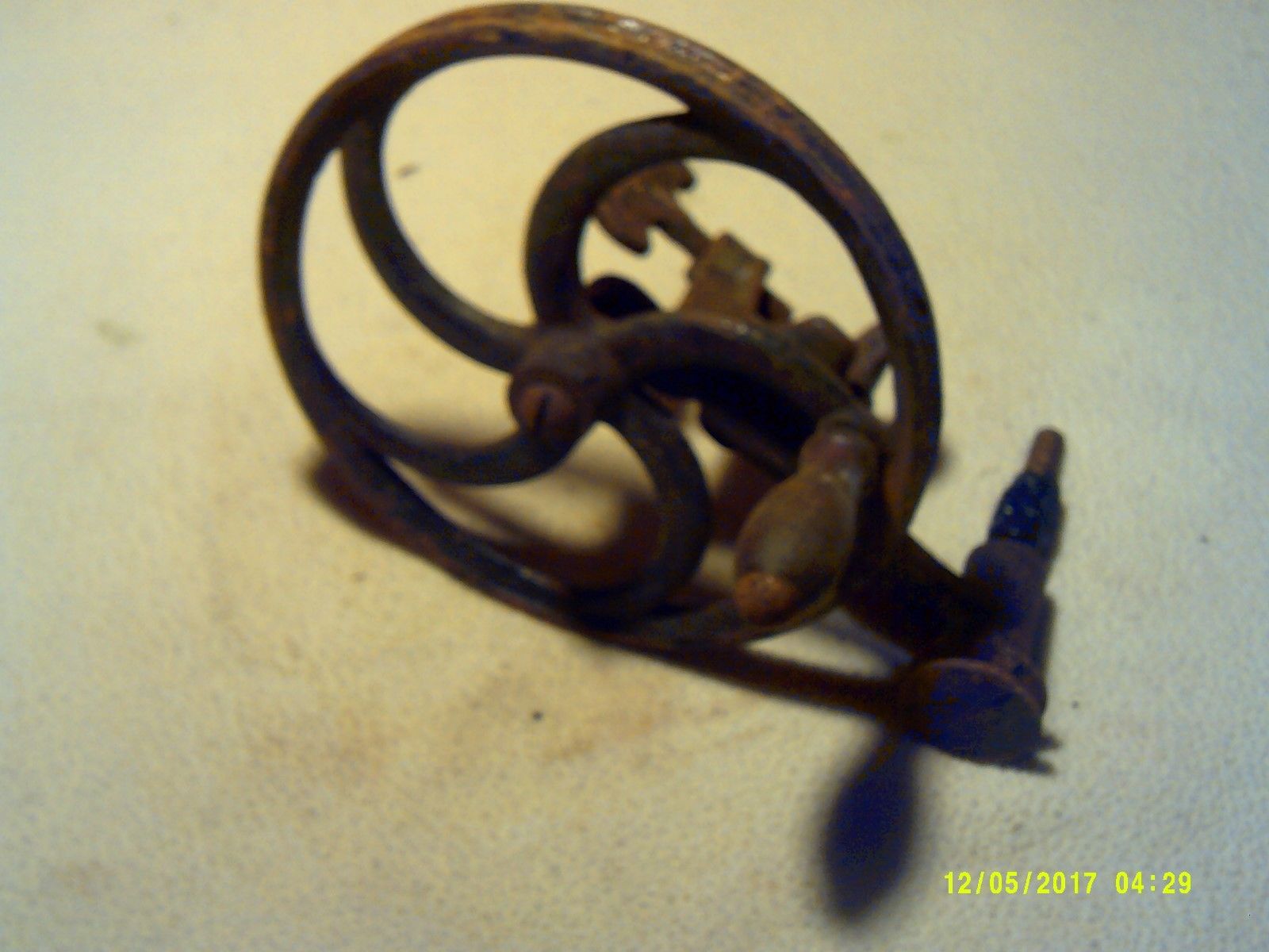 Title (ebay affiliate link): Primative Cast Iron Antique Ornate Hand Crank Pulley Run Tool