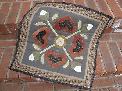 HEART TABLE MAT Primitive Table Topper Quilt Wool Applique Cotton Wall Hanging