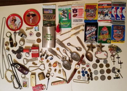Title (ebay affiliate link): Vintage junk drawer lot coca cola knife antiques collectible coins tokens 100 pc