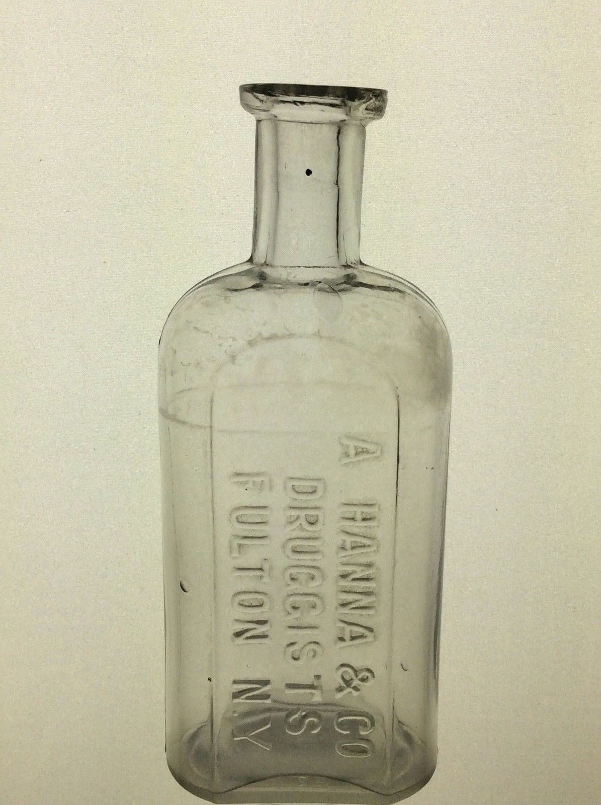 A. HANNA & CO DRUGGISTS FULTON,N.Y. DRUG MEDICINE CURE PHARMACY GLASS BOTTLE