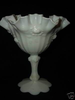 MILK GLASS foot peanut dish edges ruffled Fenton?