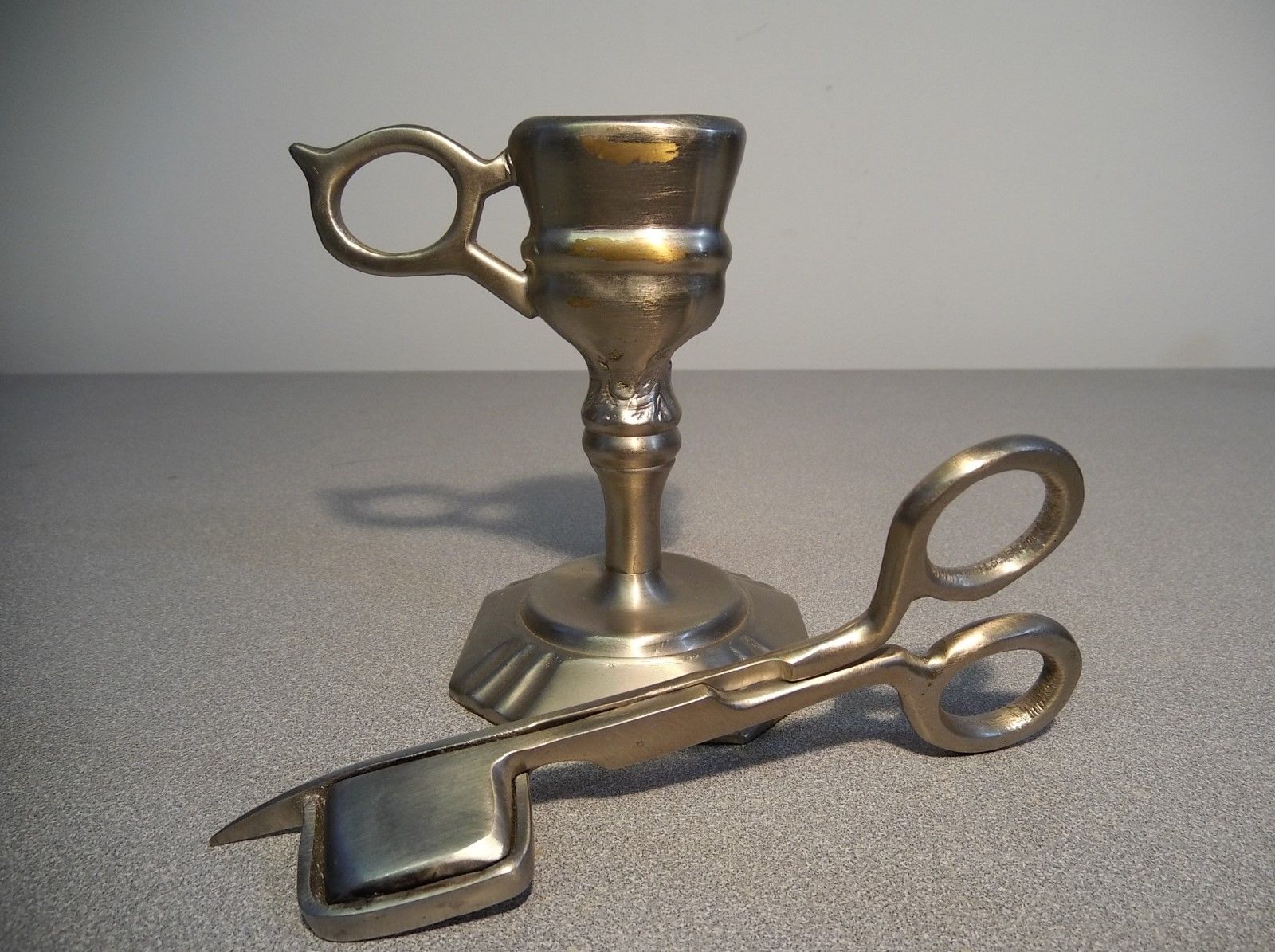 Title (ebay affiliate link): Vtg Brass? Pewter?Candle Wick Snuffer Trimmer Scissors with Stand