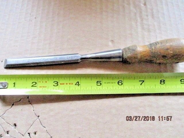 VINTAGE 1/4" SOCKET CHISEL, -BRITISH ZONE, GERMANY -BEVELED EDGE WOOD CHISEL