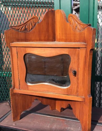 Title (ebay affiliate link): Antique Oak Arts And Crafts Bathroom Corner Cabinet Cupboard With Beveled Mirror