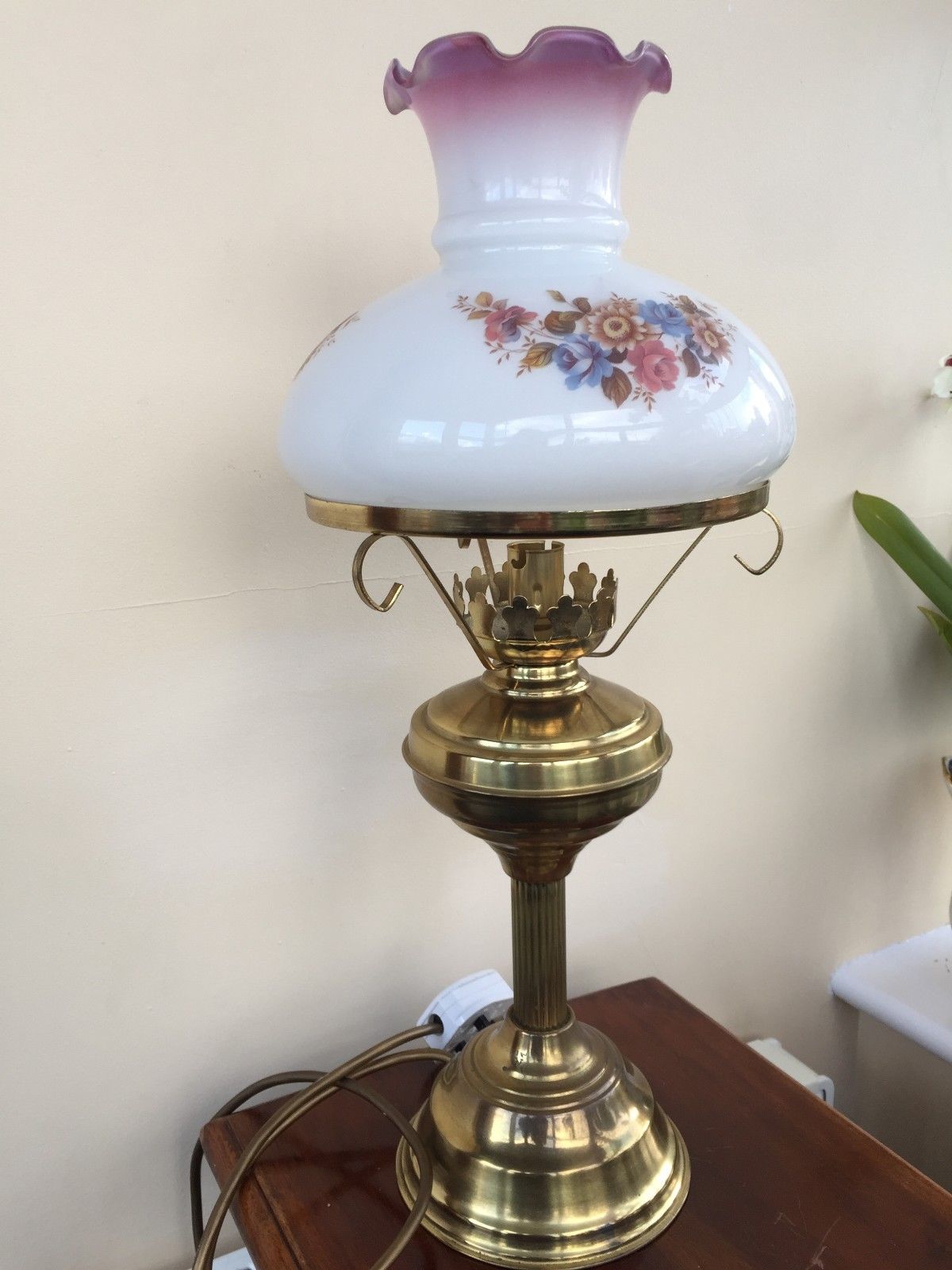 Vintage Brass Oil Lamp With Glass Globe Converted To Electric Made in England