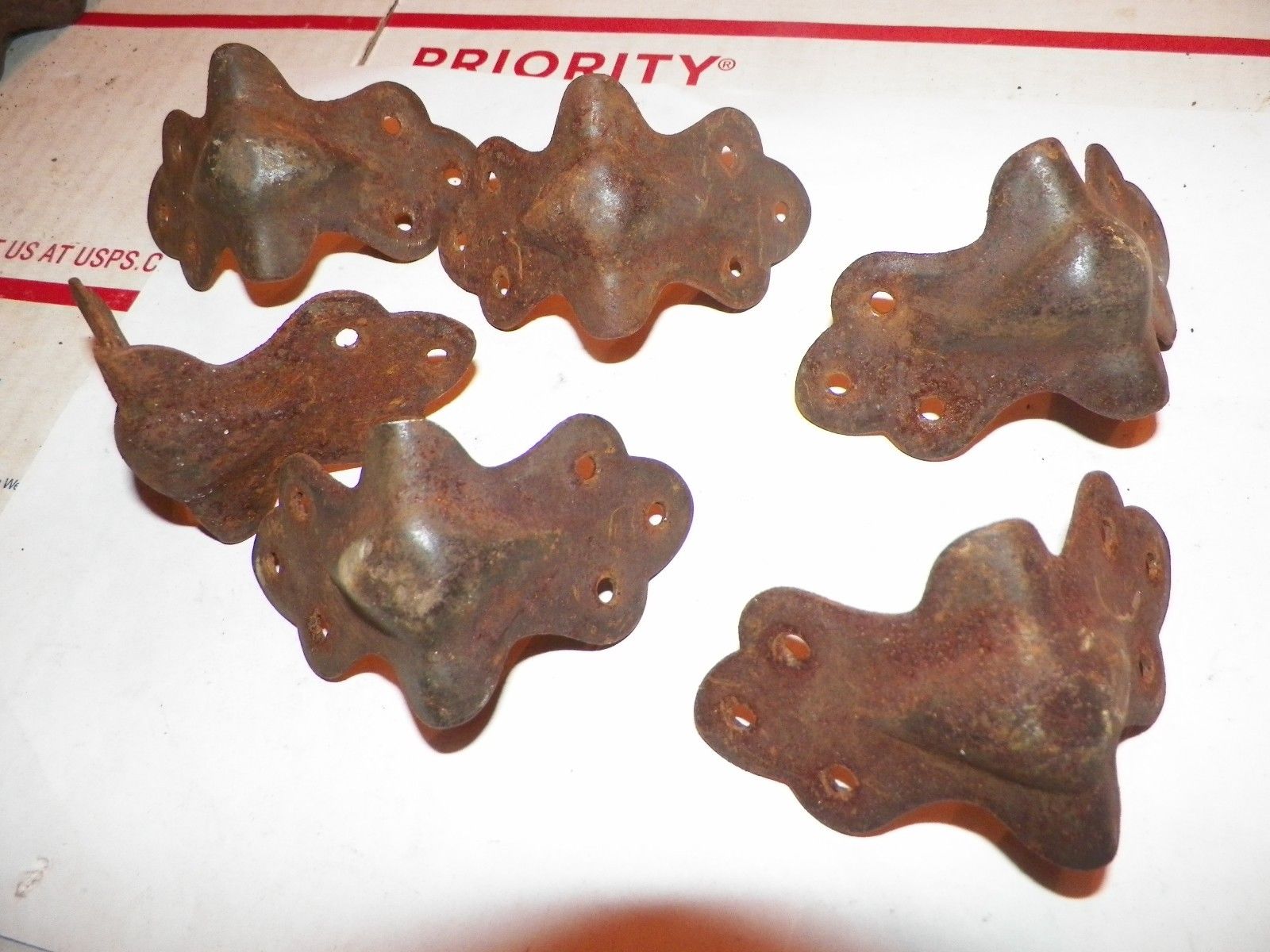 ANTIQUE STEAMER TRUNK TRIM PARTS 6 END CAPS !