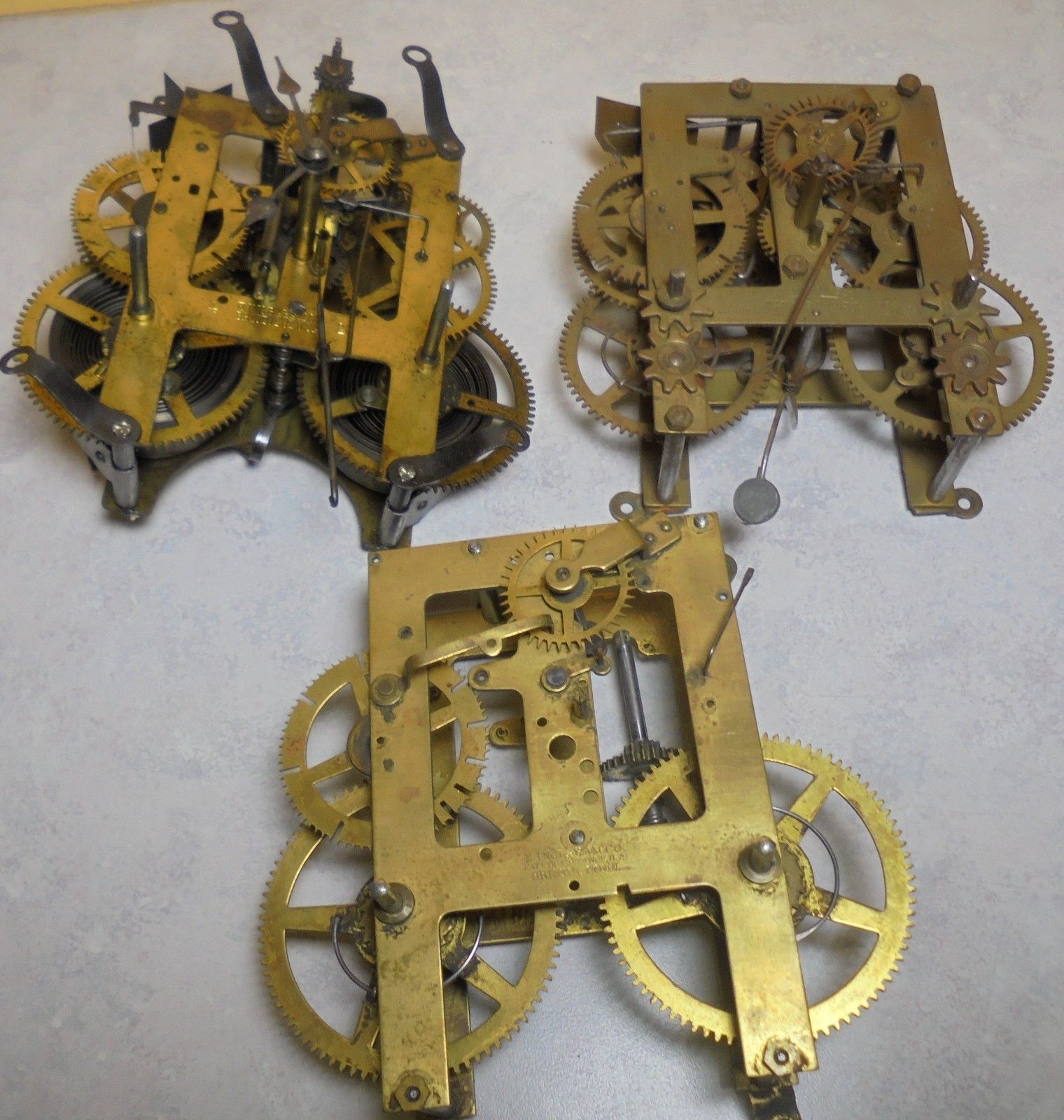 LOT OF VINTAGE ANTIQUE CLOCK PARTS MOVEMENTS REPAIR EINGRAHAM GEO B OWEN