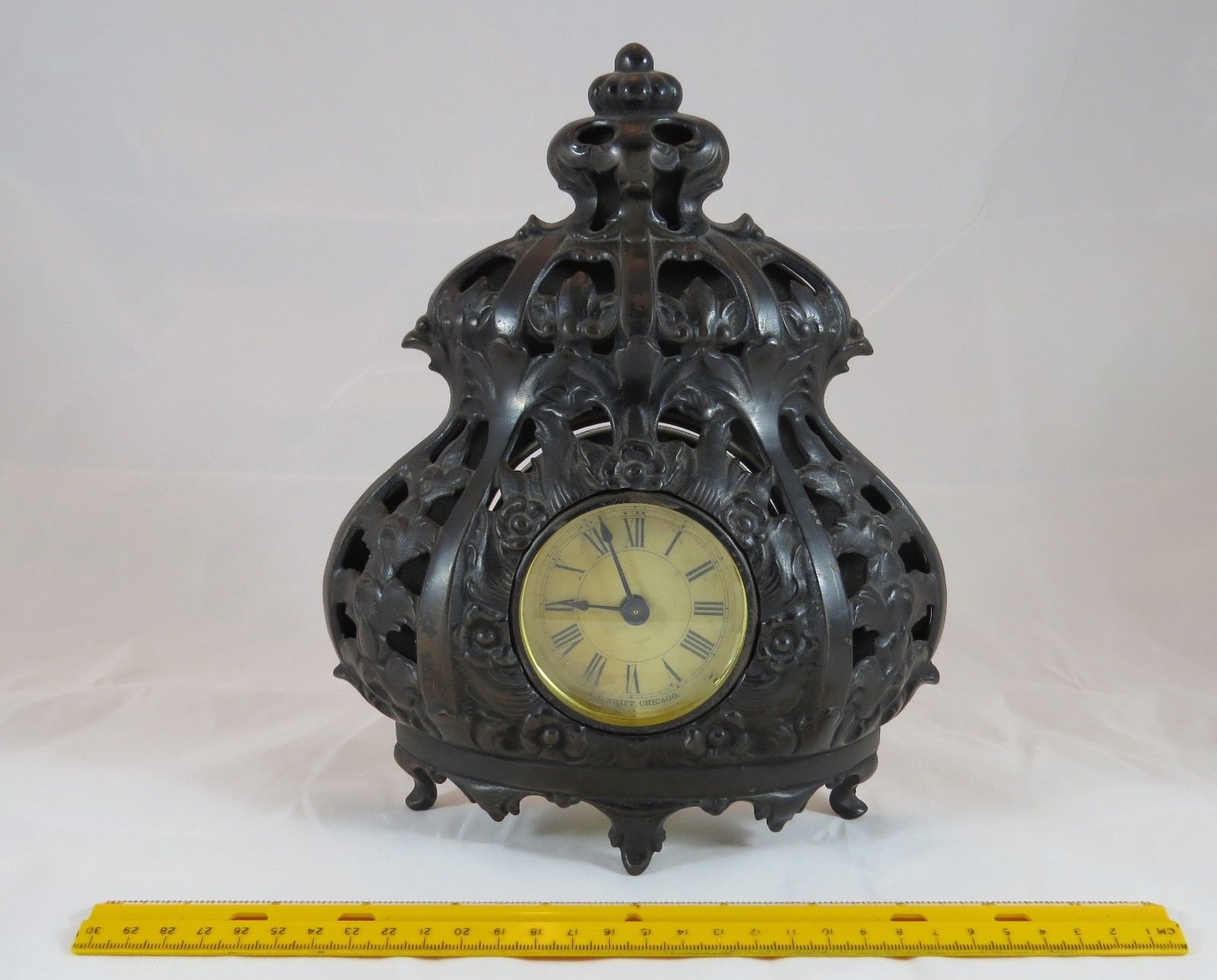 Title (ebay affiliate link): ANTIQUE DEEMER Mfg Co CHICAGO CAST IRON MANTLE CLOCK with ALARM WORKING