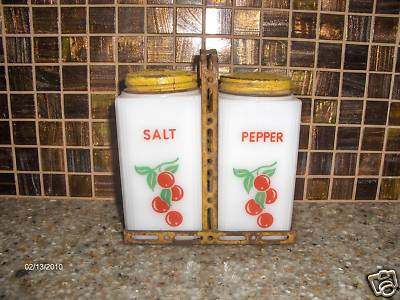 Vintage Tipp Milk Glass Salt & Pepper Shakers Cherries