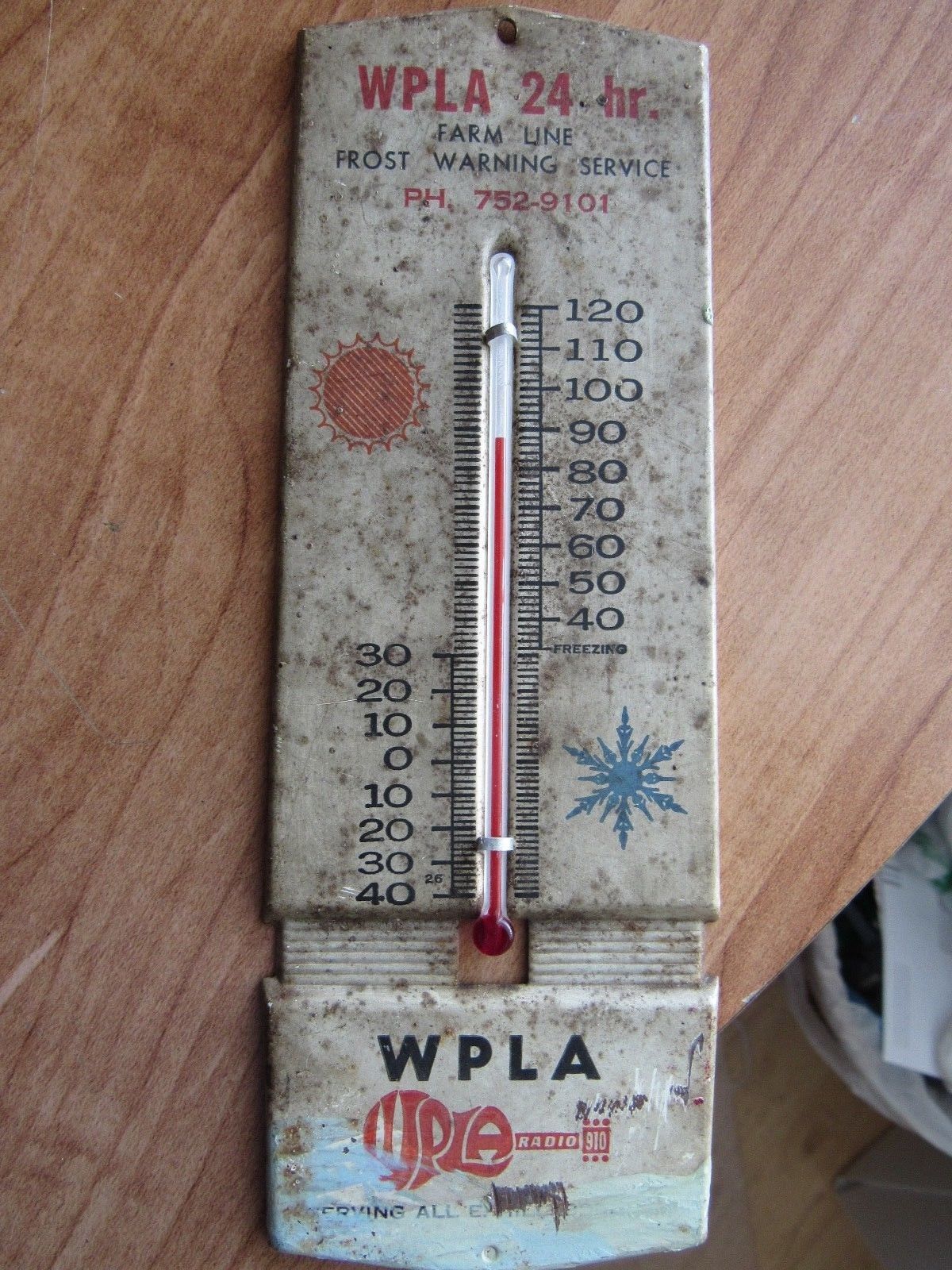 OLD WPLA RADIO FARM THERMOMETER - PLANT CITY, FLORIDA