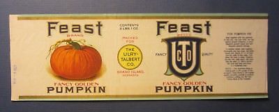 Title (ebay affiliate link): Old 1923 - FEAST - PUMPKIN CAN LABEL - Ulry-Talbert Co. Grand Island Nebraska