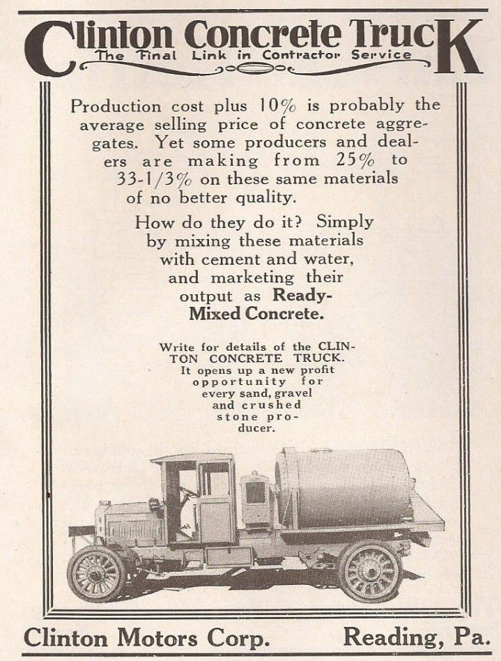 1928 CLINTON CONCRETE TRUCK ORIGINAL AD