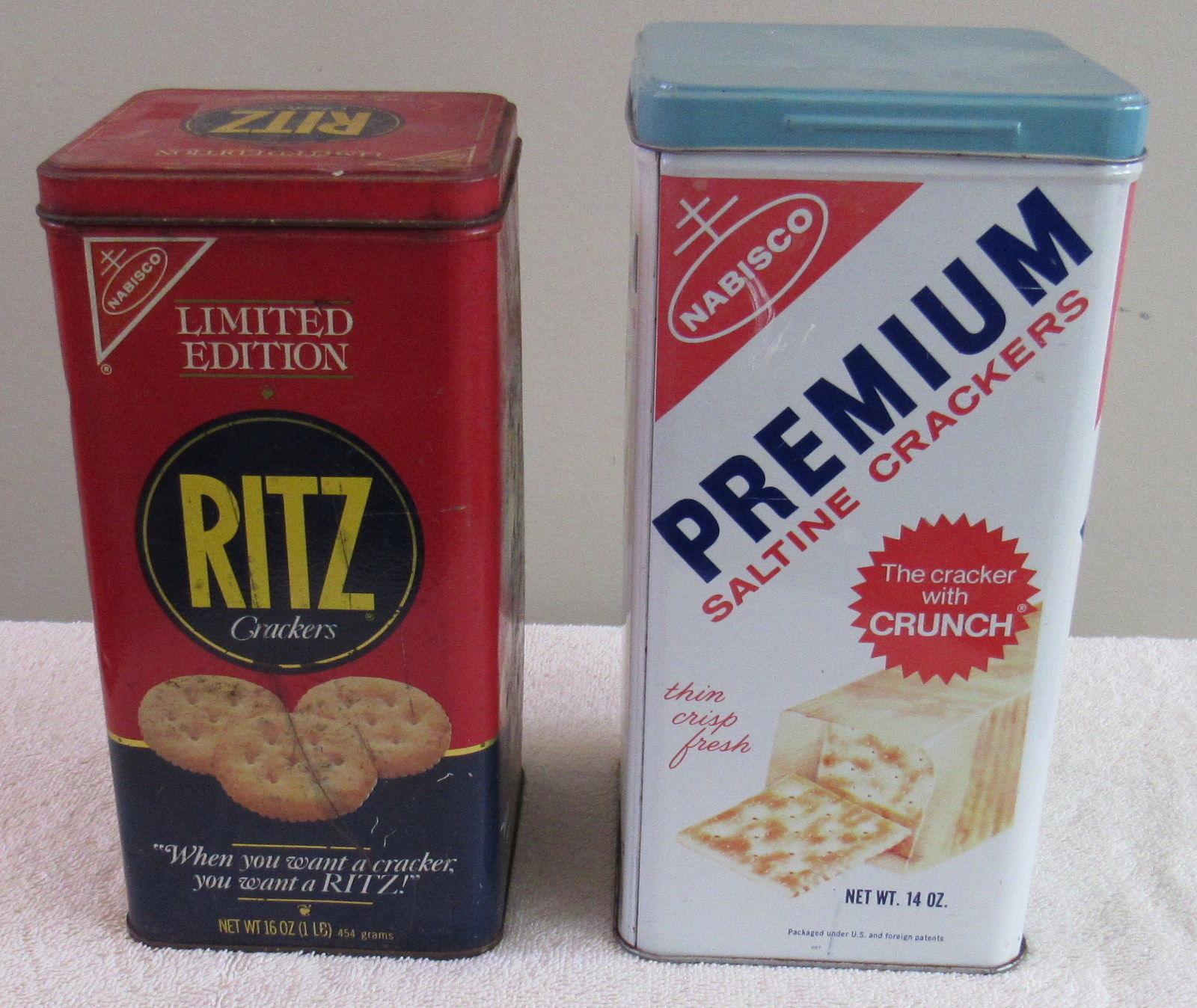 vintage Ritz (1987) and Nabisco Premium Saltine crackers tins boxes