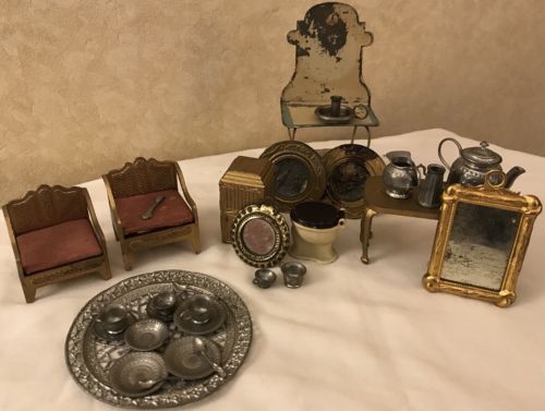 Title (ebay affiliate link): Tootsie Dollhouse Metal Upholstered Furniture Vintage Antique Miniature Lot