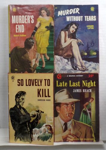 GRAPHIC MYSTERY LOT OF 4 Book 1956-57 MURDER Detective GGA
