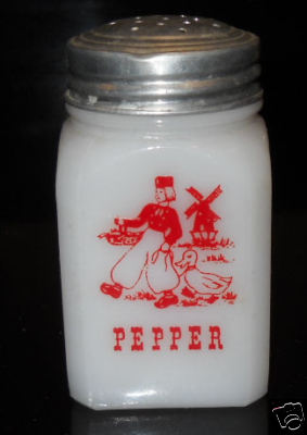 Old Art Deco Milk Glass Red Dutch Boy Pepper Shaker
