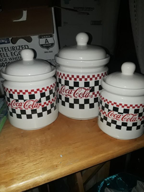 Title (ebay affiliate link): 3 Piece Coca Cola 1996 ~ Canister set with Checker board design ~ Gibson China