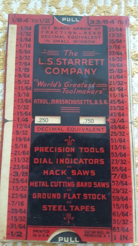 Title (ebay affiliate link): L. S. Starrett Decimal Equivalent Card Tap and Drill Guide