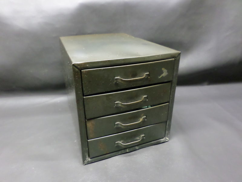 VINTAGE 4 DRAWER METAL TOOL BOX INDUSTRIAL SMALL PARTS BIN - STORAGE