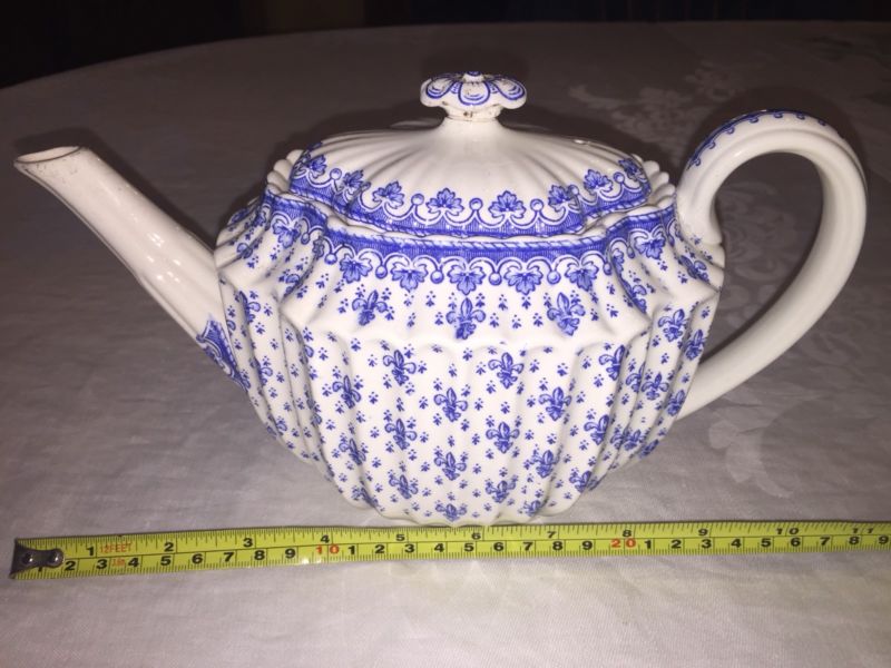 Title (ebay affiliate link): Copeland Spode Blue FLEUR DE LYS or FLEUR DE LIS Earthenware Teapot