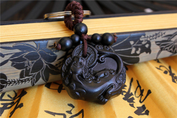 Title (ebay affiliate link): Ebony Wood Carving Chinese Dragon Pixiu Statue Sculpture Pendant Key Chain