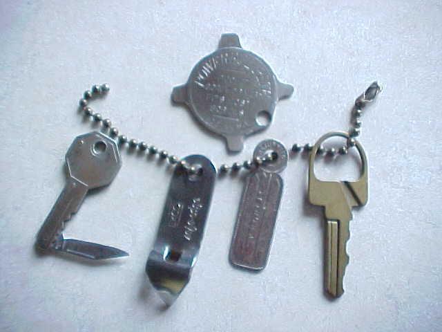 Title (ebay affiliate link): 5 VINTAGE NOVELTY KEYCHAIN FOBS KNIFE KEY POWERFUL PETE OPENER RETURN IF FOUND