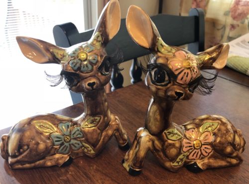 Title (ebay affiliate link): Vintage Deer Figurines Ceramic Mid Century Cute Faux Eyelashes