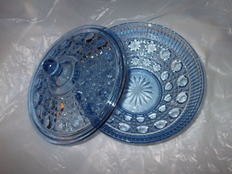 Title (ebay affiliate link): EC Blue Tint Depression Glass Candy Dish Bowl with Lid, 5" tall with lid