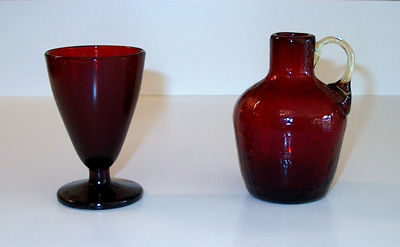 Title (ebay affiliate link): (2) Ruby Red Depression Glass Items: Jug?/Juice Glass