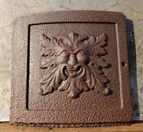 Title (ebay affiliate link): Antique Cast Iron Green Man Face North Wind Stove Door Architectural Salvage
