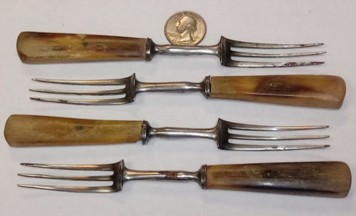 Title (ebay affiliate link): 4 - Old 1800s CIVIL WAR Era 3 TINE HORN Stag HANDLES FORKS