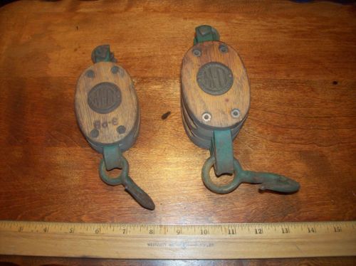 ANTIQUE FARM TOOL HOIST BLOCK AND TACKLE U-W 3-PB SET OF 2 PULLEY