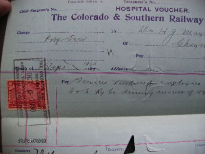COLORADO & SOUTHERN RAILWAY 1900 VOU W/ REVENUE STAMP