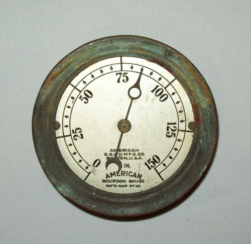 Title (ebay affiliate link): Antique Vtg Ca 1903 Brass American Steam Bourdon Gauge Steam Punk Boston Mass