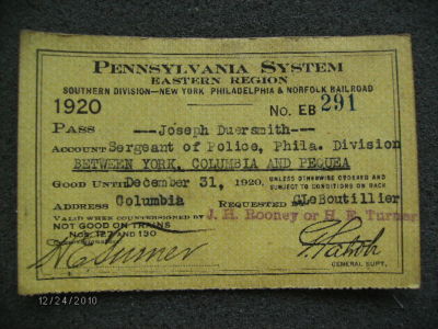 PENNSYLVANIA SYSTEM 1920 PASS JOSEPH DUERSMITH
