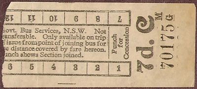 SYDNEY BUSES 1944 7d MANLY BUS DEPOT TICKET