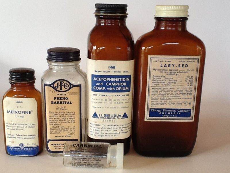 Title (ebay affiliate link): FIVE ANTIQUE DRUG BOTTLES OLD PRESCRIPTION MEDICINE