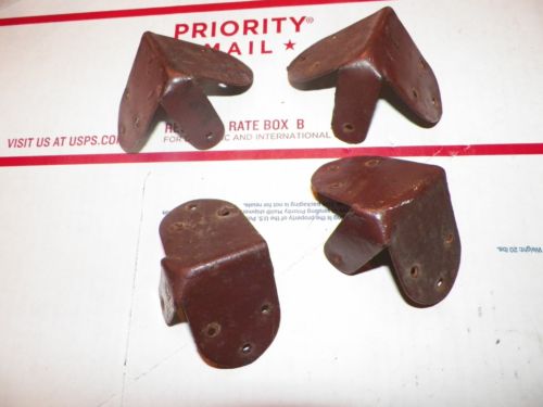 ANTIQUE STEAMER TRUNK TRIM PARTS 4 LID TOP Corner End Caps Old Brown Paint
